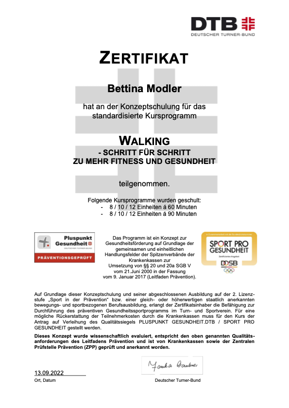 Kursleiter für folgende Präventionskurse nach § 20 SGB V