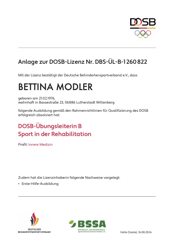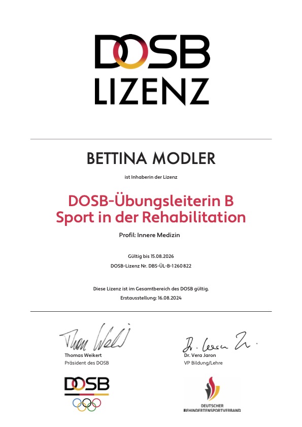 Übungsleiter-Lizenz B – Rehabilitation Fachbereich Innere Medizin